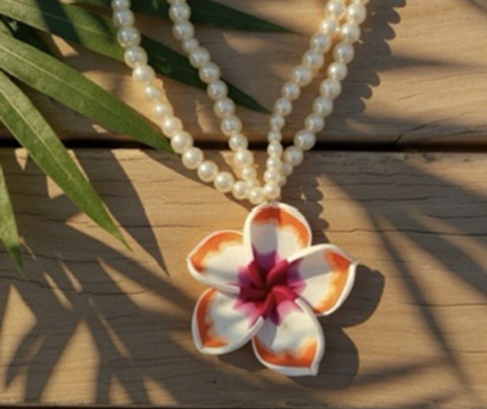 Orange plumeria with white pearls brings life